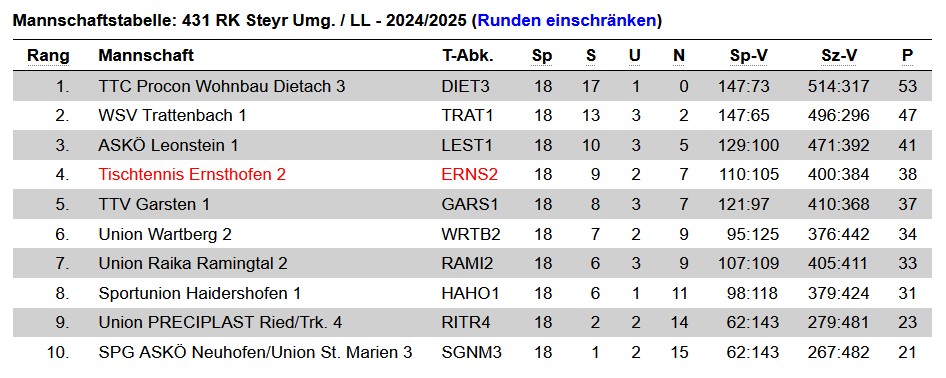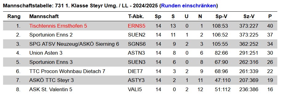 Liebe Ernsthofnerinnen und Ernsthofner! Liebe Vereinsobleute! Es ist wieder soweit, am 25.1.2025 gibt es die 33. Auflage der TT-Ortsmeisterschaft des